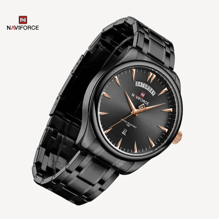 ساعت مچی مردانه نیوی فورس NAVIFORCE مدل NF9213می باشد. کسانی که ساعت مچی اورجینال با قیمت مناسب و با دوام و کیفیت بالا می خواهند NAVIFORCE یک انتخاب عالی محسوب می شود. این ساعت با طراحی کلاسیک ، بند استیل میباشد. ساعت های نیوی فورس محصول اورجینال هستند که موتور کوارتز ساخت ژاپن با کیفیت عالی دارند. دارای بند استیل,ضد حساسیت رنگ ثابت با شیشه معدنی مقاوم در برابر خش که در این چند سال خیلی توانسته در دل مردم جا باز کند. ساعت های نیوی فورس ظاهر جذاب و اسپرتی دارند
